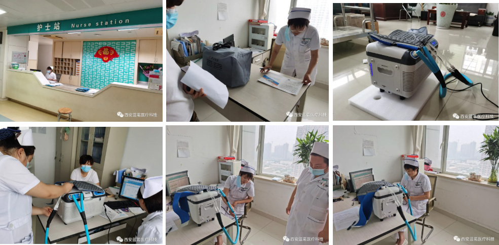 2021年7月12日上午,西安藍茗醫(yī)療科技有限公司第一營銷中心大區(qū)總監(jiān)郭銘遠抵達蓬萊市中醫(yī)院,在醫(yī)院對醫(yī)護人員對我公司生產(chǎn)的加壓冷熱敷機,進行了詳細的裝機和培訓,現(xiàn)場醫(yī)護人員及患者進行了體驗,并得到醫(yī)護人員的一致好評,此次培訓取得圓滿成功。